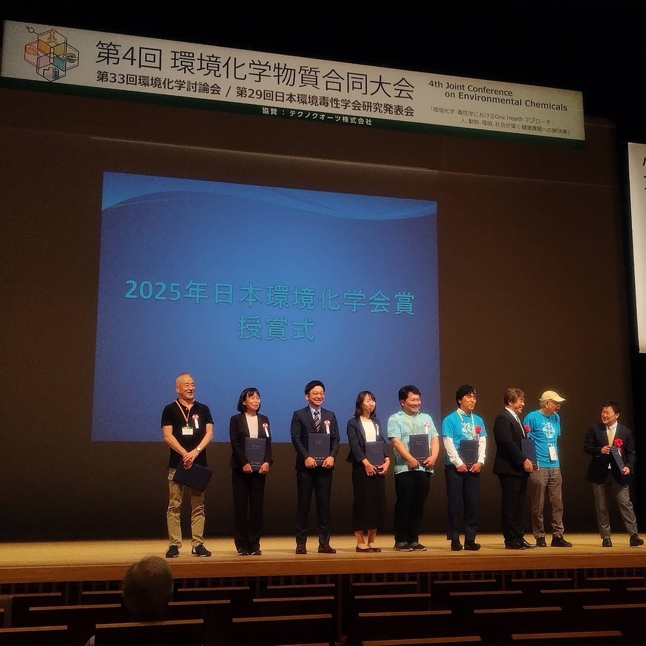 このたび、大気環境学会第66回年会(9月18日)において、本センター大気圏研究部の弓場彬江・主任研究員に進歩賞が、生態影響研究部の諸橋将雪・主任研究員と佐瀬裕之・部長にAJAE(Asian Journal of Atmospheric Environment)論文賞が授与されました。また、長年にわたる研究と大気環境学会に対する多大な貢献が認められ、畠山史郎・前所長が名誉会員に推戴されました。さらに、第33回環境化学討論会(7月16日)において、情報管理部の佐々木博行・主任研究員と大気圏研究部の二見真理・主任研究員に環境化学論文賞が授与されました。