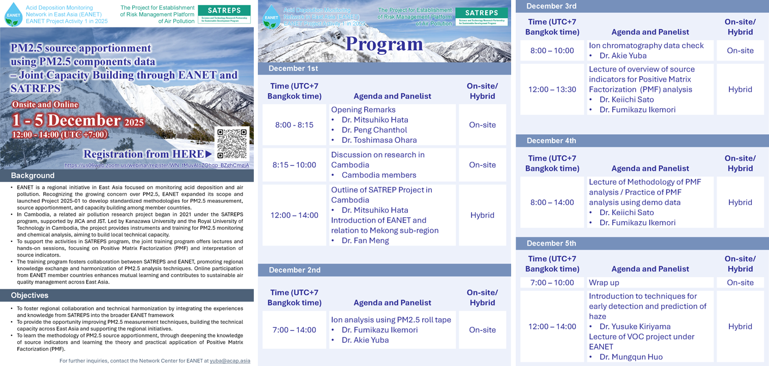 【Join us Online!】PM2.5 source apportionment using PM2.5 components data – Joint Capacity Building through EANET and SATREPS – Join us on December 1st – 5th !